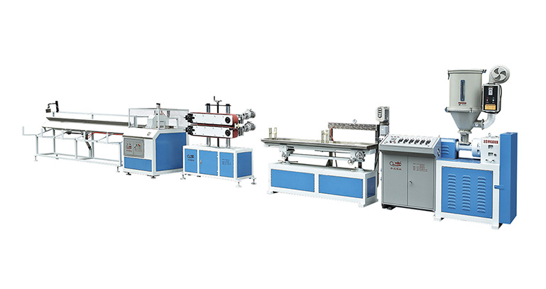 The extruder speed controlled bu Frequency Inverter, according to different sizes products used different model of the machine. Calibration table adopt Stainless steel, water receiving disc, With domestic brand-name vacuum pump, For synchronous machine drive traction box section, automatic cylinder lifting, Crawler type tractor, Cutting length positioning the stroke switch, fixing length cutting, pneumatic turnover.
